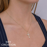 0.30CT 14K Y/G DIAMOND BAGUETTE CROSS NECKLACE