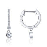 Graceful and radiant, these 1/8ctw diamond huggie earrings in 14k white gold blend modern charm with timeless sophistication. Each earring features a delicate row of pavé-set diamonds along the hoop, leading to a single bezel-set diamond that sways elegantly with every movement. The luminous white gold enhances the brilliance of each stone, creating a captivating shimmer from every angle. Perfect for both everyday elegance and special occasions, these earrings embody refined beauty in its purest form.