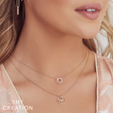 Radiant and refined, this 1/10ctw diamond circle necklace captures timeless elegance in its purest form. Crafted in luminous 14k yellow gold, two interlocking circles—one sleek and polished, the other lined with G-H color, SI clarity round diamonds—symbolize harmony and eternal connection. A brilliant center diamond adds a touch of sparkling sophistication to the minimalist design. Adjustable to 15, 16, 17, or 18 inches, this necklace secures with a lobster clasp, making it a versatile and luxurious accent for any occasion.