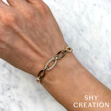 Elevate your wrist with the captivating elegance of this 3/4ctw diamond 14k yellow gold link bracelet. Sculpted oval links radiate with a polished glow, while alternating links shimmer with brilliant diamonds, adding refined sparkle to every gesture. Crafted in luxurious 14k yellow gold, it exudes both modern sophistication and timeless charm. A secure tongue clasp ensures a seamless, comfortable fit, perfect for day-to-night glamour.
