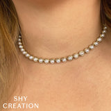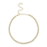 14K Y/G CULTURED PEARL BEZEL TENNIS NECKLACE