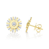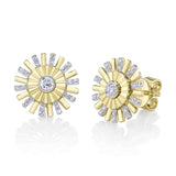0.22CT 14K Y/G DIAMOND BEZEL RIBBED STUD EARRING
