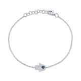 0.09CT DIAMOND & 0.08CT BLUE SAPPHIRE 14K W/G HAMSA BRACELET
