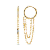 0.18CT 14K Y/G DIAMOND BAGUETTE HUGGIE CHAIN EARRING