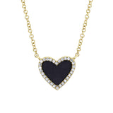 0.09CT DIAMOND & 0.59CT BLACK ONYX 14K Y/G HEART NECKLACE