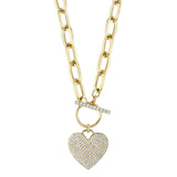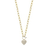 0.50CT 14K Y/G DIAMOND PAVE HEART PAPER CLIP LINK NECKLACE