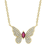 0.16CT DIAMOND & 0.09CT RUBY 14K Y/G MARQUISE BUTTERFLY NECKLACE
