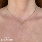 Graceful and radiant, this 1/20ctw diamond cross necklace in 14k yellow gold embodies timeless devotion and refined elegance. Each shimmering diamond is delicately set along the sleek cross, creating a captivating play of light that catches every glance. The warm glow of polished gold enhances the brilliance of the stones, offering a look that is both classic and contemporary. Perfect for everyday wear or cherished as a meaningful keepsake, this pendant shines with understated grace and eternal beauty.