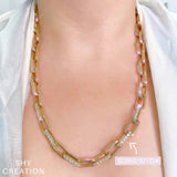 13.01CT 14K Y/G DIAMOND PAVE PAPER CLIP LINK NECKLACE