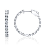 Radiating timeless brilliance, these 1ctw diamond hoop earrings are a captivating expression of sophistication. Crafted in 14k white gold, each earring showcases a continuous line of dazzling round-cut diamonds that shimmer from every angle, catching the light with every graceful turn. The polished gold enhances the icy fire of the diamonds, creating a seamless blend of luxury and allure. Perfect for day-to-night elegance, these hoops make an exquisite addition to any fine jewelry collection.