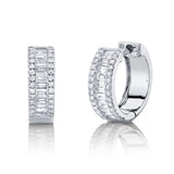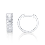 Radiating timeless elegance, these 1/2ctw diamond huggie earrings capture the essence of modern sophistication. Crafted in 14k white gold, each earring showcases a stunning row of baguette-cut diamonds framed by shimmering round diamonds, creating a dazzling play of light from every angle. The sleek huggie design ensures a comfortable, close fit while exuding refined glamour. Perfect for elevating any ensemble, these earrings embody luxury that effortlessly transitions from day to evening.