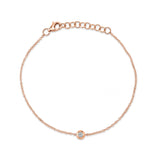 Gracefully minimalist yet endlessly elegant, this 1/20ctw diamond bracelet is the epitome of refined sophistication. Crafted in luminous 14k rose gold, a single G-H color, SI clarity diamond sparkles within a polished bezel setting, radiating timeless brilliance. The delicate chain is finished with a secure lobster clasp and a built-in extender, allowing the bracelet to adjust effortlessly for a perfect fit. Designed for everyday elegance, this piece layers beautifully or shines on its own as a whisper of luxury.