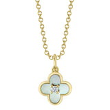 0.02CT DIAMOND & 0.33CT MOTHER OF PEARL 14K Y/G CLOVER NECKLACE